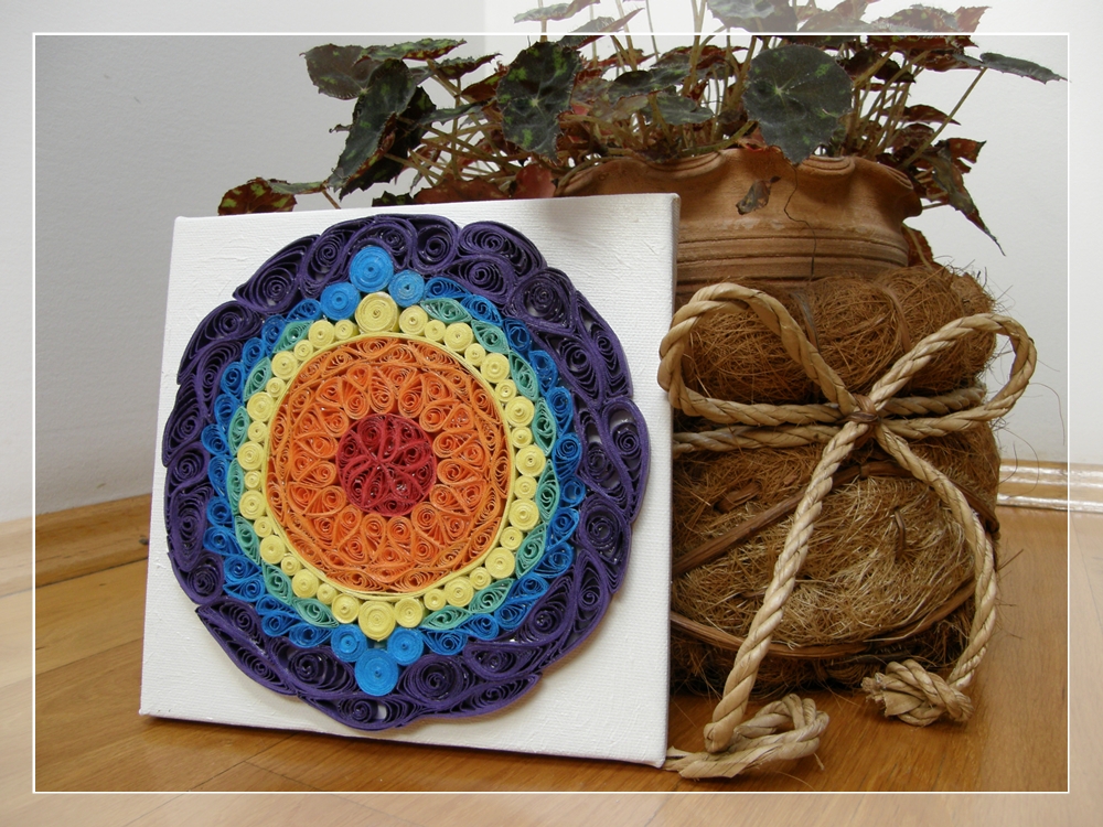 Tablou din hartie (quilling) in culorile curcubeului: Rainbow Mandala